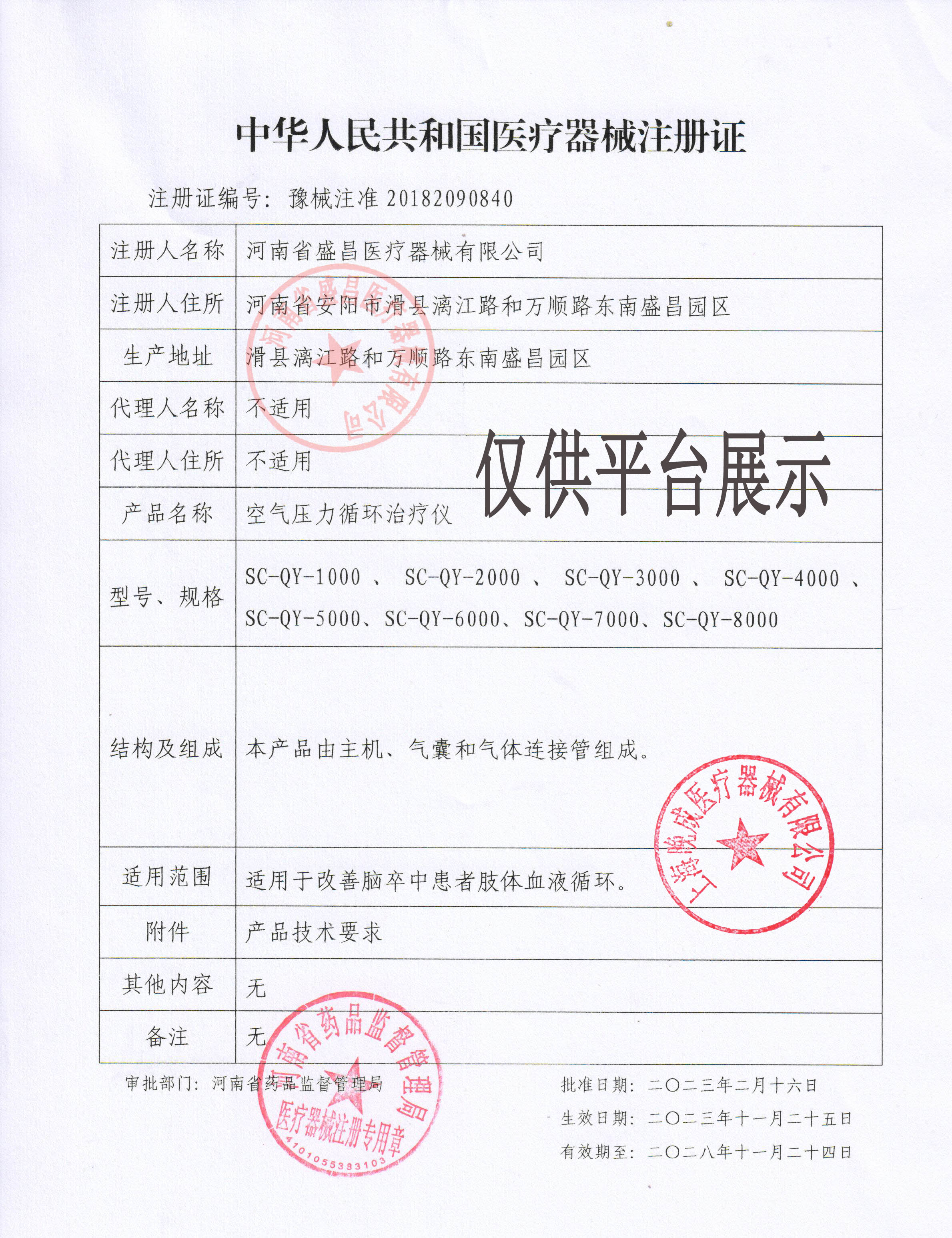 | 產(chǎn)品名稱 : | 盛昌 SC-QY-8000型 空氣壓力循環(huán)治療儀 |